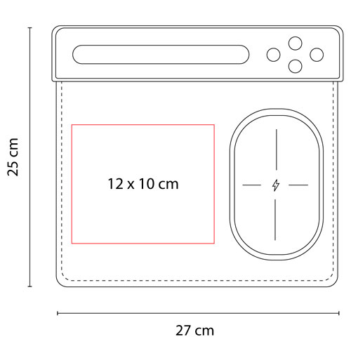Organiza y potencia tu espacio de trabajo con este práctico Cargador Mouse Pad Agadir. Combina la comodidad de un mouse pad de calidad, un soporte para smartphone y un elegante porta plumas, todo en uno. Además, integra un cargador inalámbrico compatible con la mayoría de dispositivos que admiten carga Qi (5W), permitiéndote recargar tu móvil mientras trabajas.