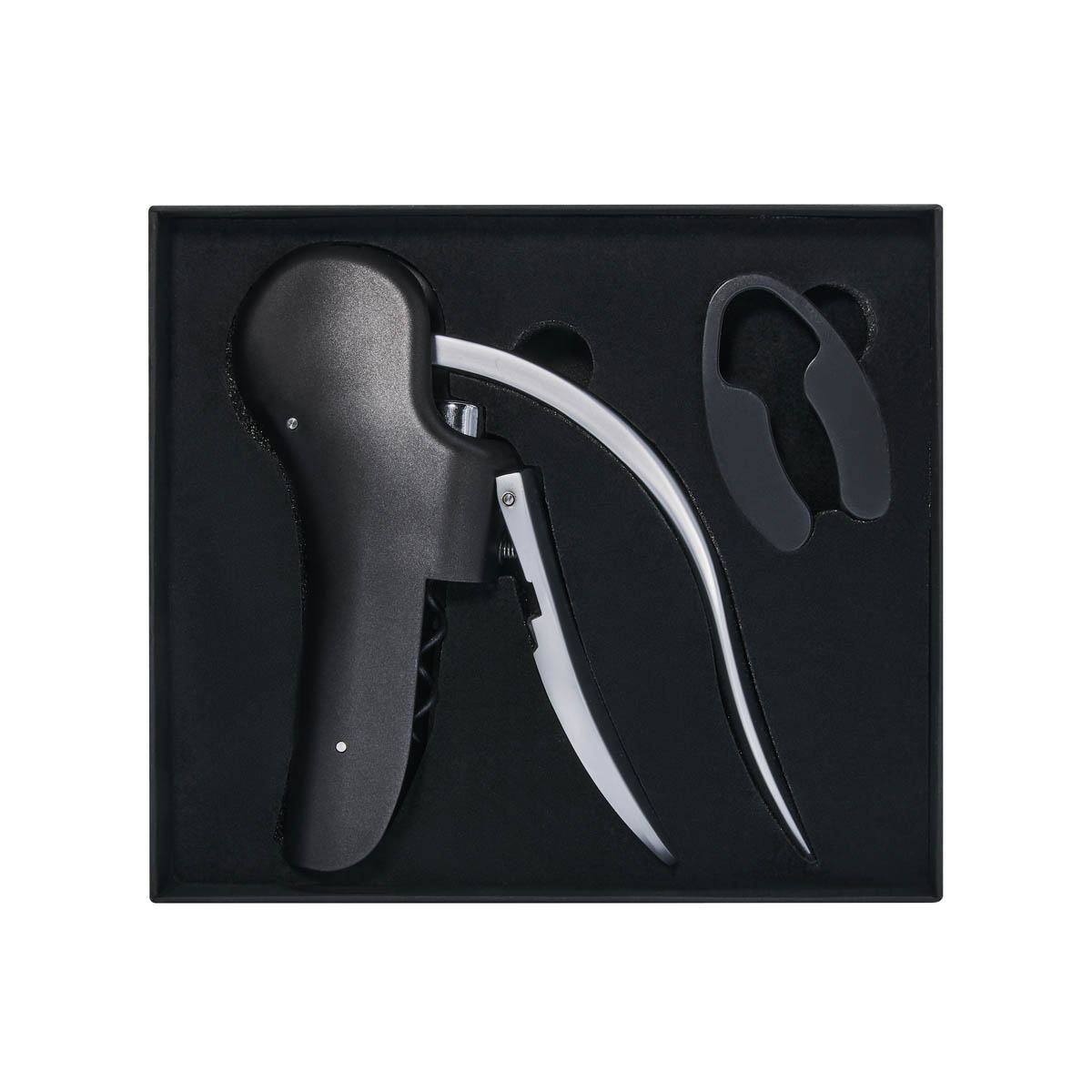 ¿Buscas el set perfecto para disfrutar de tus vinos favoritos o un regalo promocional que realmente sorprenda? El Set para Vinos Nabid es la solución ideal. Incluye un sacacorchos manual con bomba de palanca, diseñado para una extracción suave y sin torceduras del corcho. Su práctico diseño vertical de pie te permite guardarlo fácilmente y el agarre para cuello de botella asegura un manejo cómodo y seguro.