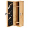 Estuche de bambú para botella de vino. Incluye sacacorchos con navaja y destapador, stopper, boquilla y arillo.