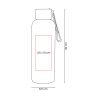 Su diseño sencillo y práctico incluye una tapa roscada segura y un asa de silicona para facilitar su transporte. Es perfecto para llevar agua, zumos o cualquier bebida favorita. Ten en cuenta que, al ser un artículo promocional, puede presentar ligeras variaciones estéticas propias del proceso de fabricación y almacenamiento, pero esto no compromete su calidad ni funcionalidad. ¡Un regalo útil y ecológico que tus clientes agradecerán!