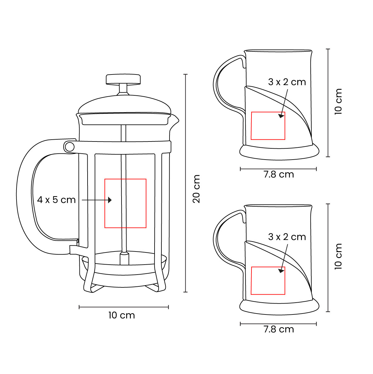 | Medidas | 10 X 20 Cm Prensa Francesa / 7.8 X 10 Cm Tazas |