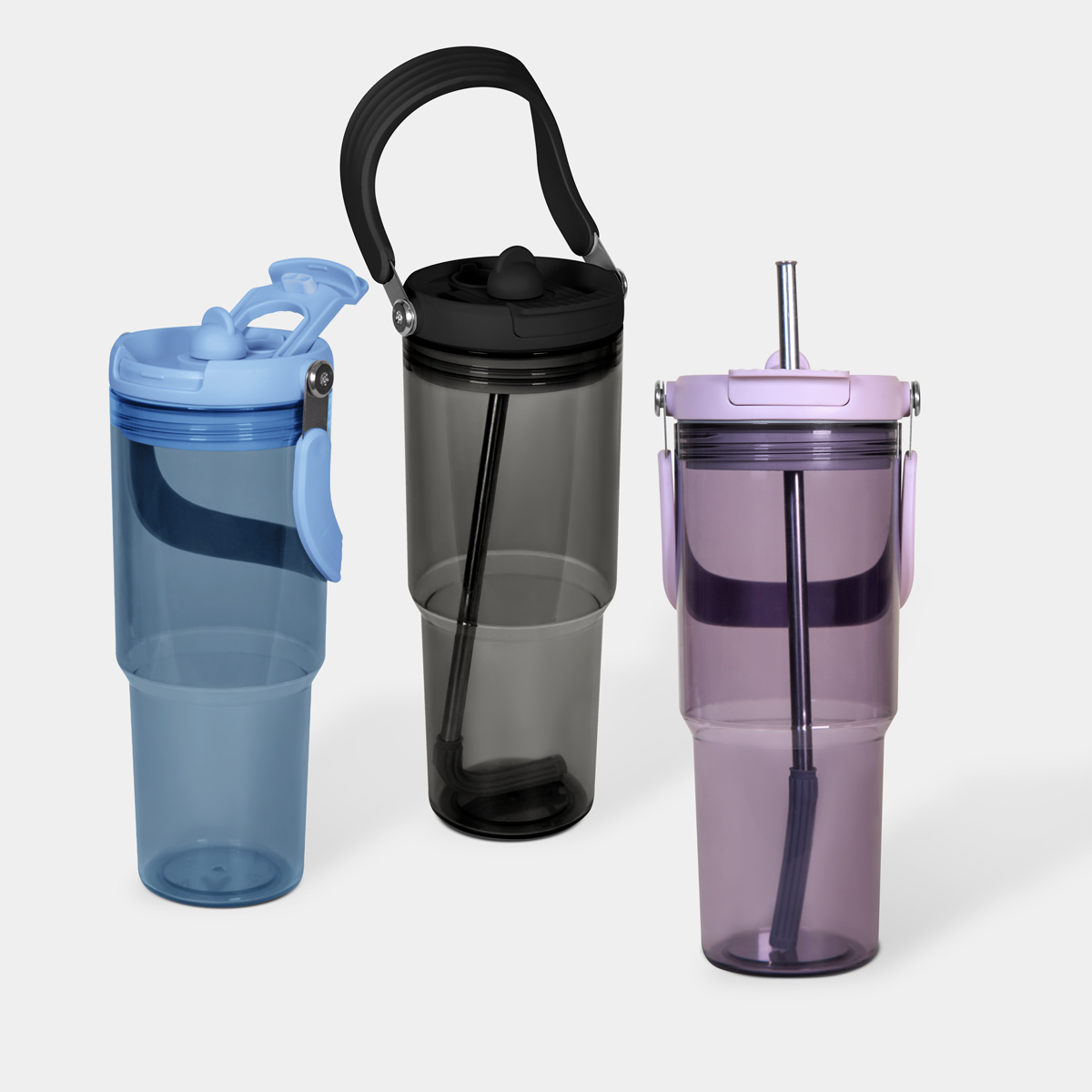 Termo de plástico de una pared. Incluye tapa con cierre de rosca que ofrece dos alternativas de uso, sobre tapa con sistema push y ranura especial para popote con aditamento para cerrar y evitar derrames. Incluye popote metálico que cuenta con un mecanismo de salida automática y una base de silicón, que lo eleva al abrir el compartimento. Además, su práctica asa plegable, permite llevarlo cómodamente a cualquier lugar. Capacidad 28 Oz. Base de 7 cm de diámetro. Incluye caja individual.