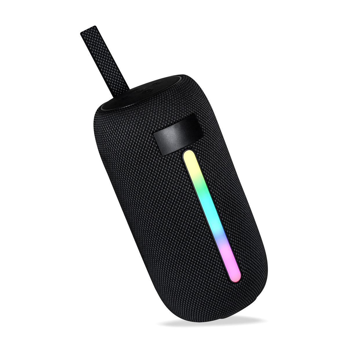 Bocina con tecnología bluetooth 5.3. Potencia 10 W. Batería recargable con capacidad de 1,500 mAh que otorga un tiempo de reproducción de 3 a 5 horas. Alcance de conexión de 10 metros. Incluye iluminación LED con botón independiente para cambiar o ajustar el efecto o color. Además, agrega tecnología TWS que permite sincronizarla con otra bocina del mismo modelo y reproducir música simultáneamente. Puerto de conexión tipo C, USB y ranura para tarjeta TF. Incluye cable con conector tipo C y caja individual.