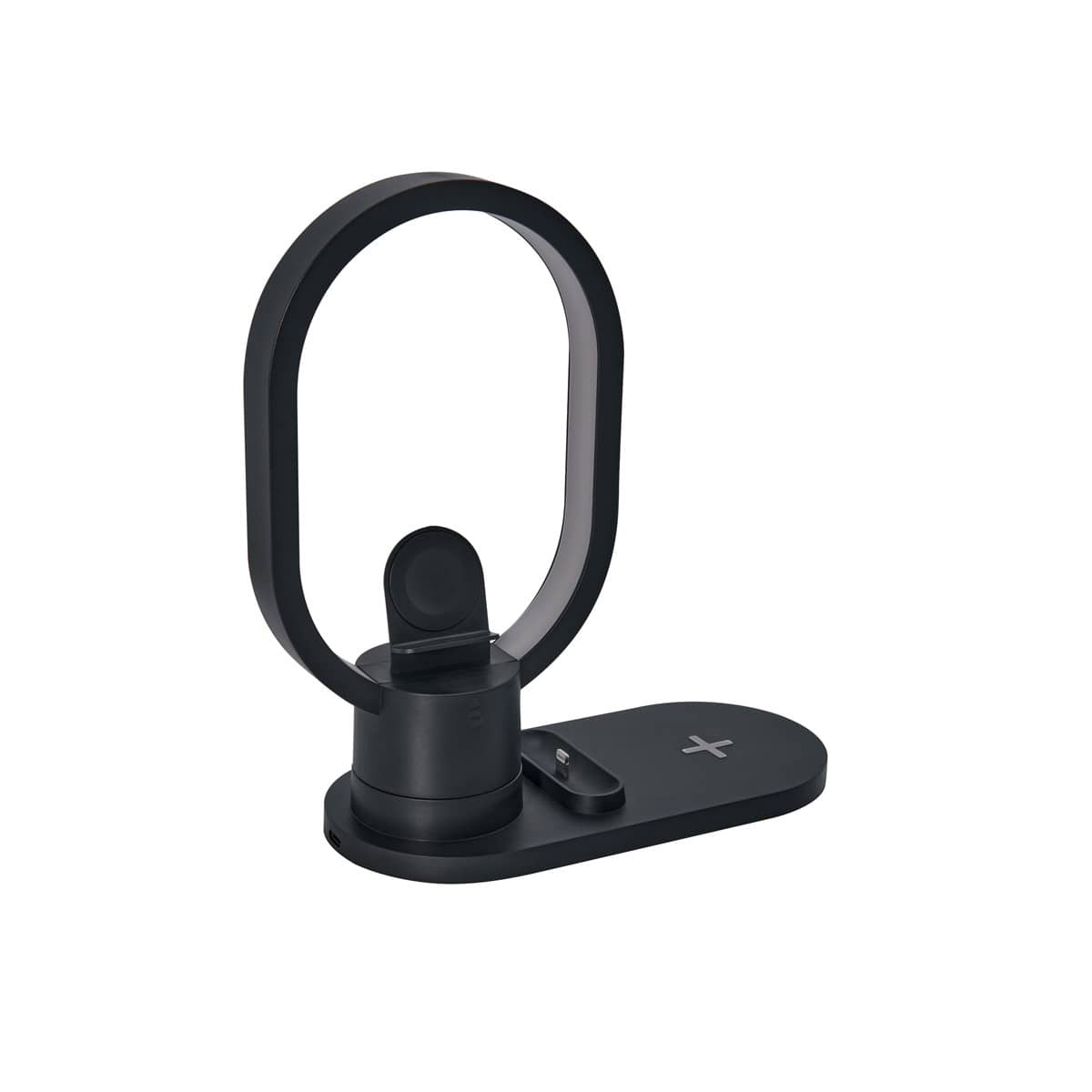 Base con cargador inalámbrico para smartphone, cargador inalámbrico para reloj inteligente, cargador para earbuds y lámpara de noche con luz cálida. Velocidad de carga de 5W / 7.5W / 10W / 15W. Base giratoria con touch para encender la lámpara. Compatibles con dispositivos que cuenten con tecnología de carga inalámbrica.