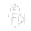 Vaso para portátil 2 en 1 para mascotas. Una pared de plástico, con tapa hermética, 4 broches de seguridad y 2 boquillas con mecanismo tipo push. Cuenta con compartimentos separados para agua (350 ml) y alimento (250 g), Incluye un plato plegable de silicón con gancho metálico para fácil transporte. Ideal para paseos o viajes con mascotas. Capacidad 120 Oz. Base de 7.7 cm de diámetro.
