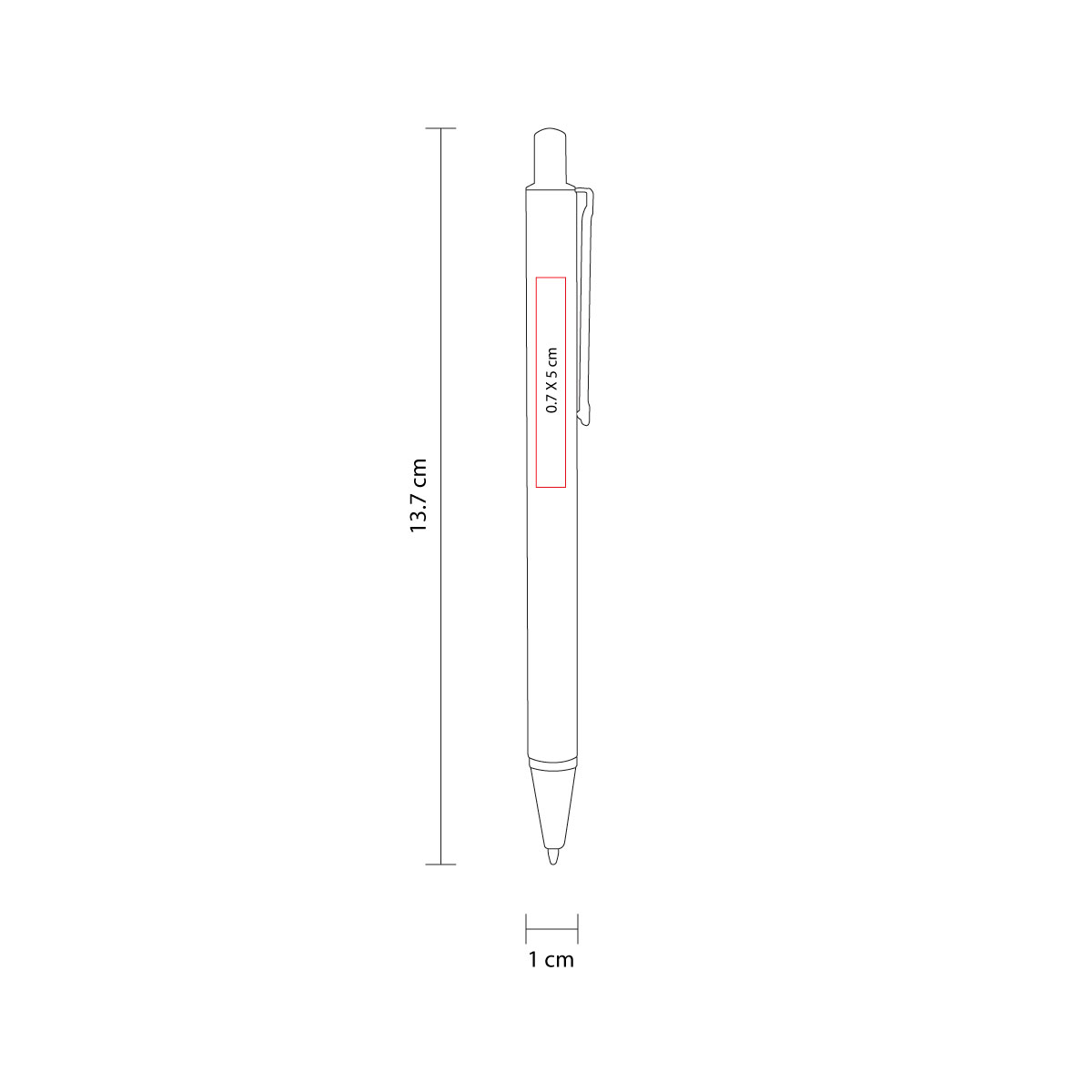 ¿Buscas un bolígrafo promocional elegante y funcional? El Bolígrafo Paloa es la elección perfecta para campañas publicitarias, eventos o como regalo corporativo memorable. Su cuerpo metálico con acabado mate ofrece una sensación premium al tacto, mientras que el clip suajado asegura un agarre seguro en tu bolsillo o libreta.