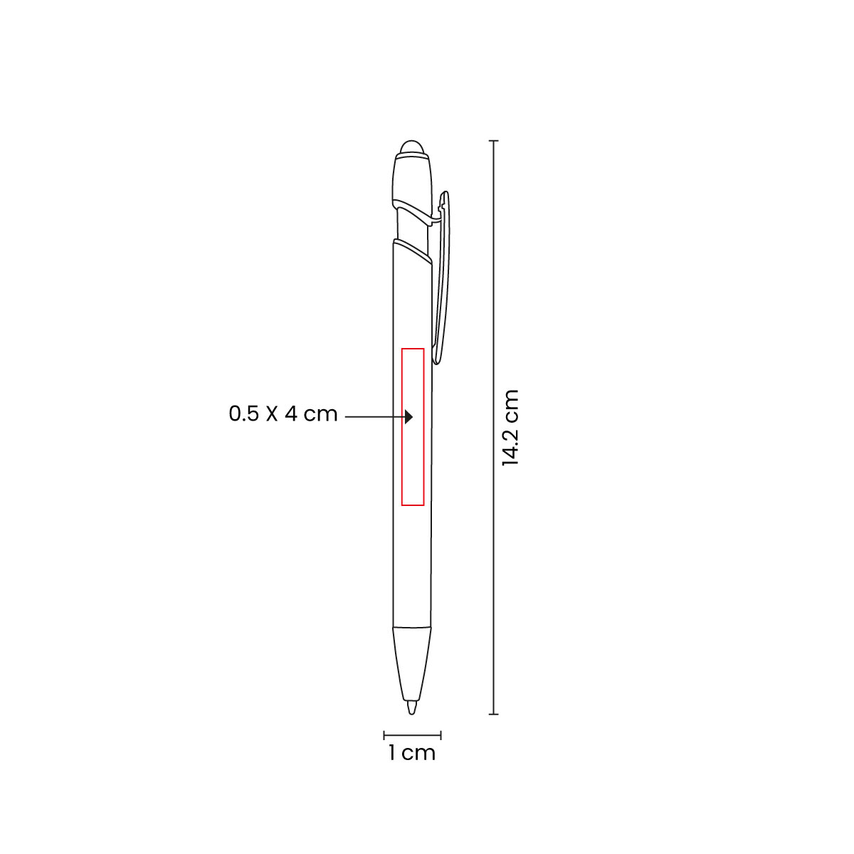Además de escribir suavemente gracias a su mecanismo pulsador, este bolígrafo incluye una práctica funda protectora. Su función touch screen te permite interactuar con tus dispositivos móviles sin necesidad de otro stylus. Un regalo original y útil que dejará una impresión duradera. Perfecto para empresas que buscan un obsequio promocional efectivo y diferenciado. ¡Consigue ya tu Bolígrafo Wilde!