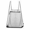 Bolsa-mochila gris, material jaspeado, bolsillo frontal con cierre, con tirantes de cordón y cerrado de jareta.