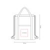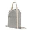 Bolsa-mochila gris ecológica de algodón reciclado con tirantes de cordón y cerrado de jareta. Cuenta con una bolsa frontal y asas para usar como bolsa.