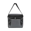 Interior plastificado impermeable. Bolsa principal con cierre. Bolsa lateral de red y bolsillo frontal. Incluye correa ajustable. Capacidad para 10 latas.