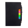 Libreta con 70 hojas de raya. Incluye bolígrafo y notas adheribles de colores.