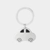 Llavero metálico con diseño en forma de automóvil.