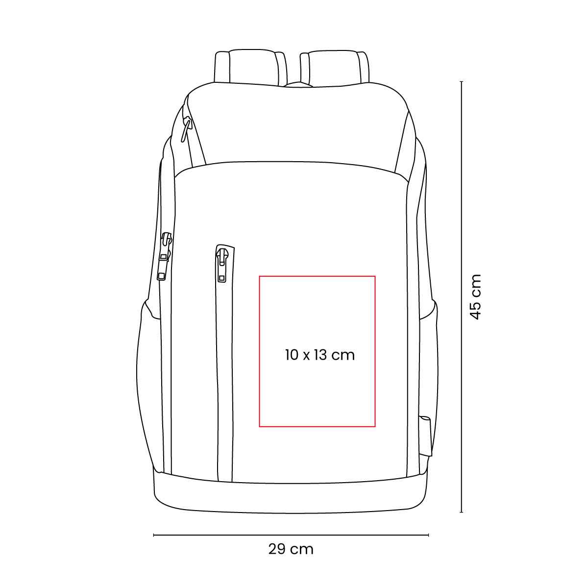 Perfecta para estudiantes, profesionales o cualquier persona que necesite llevar sus pertenencias de forma organizada, la Mochila Baum cuenta con un compartimento acolchado para laptop de hasta 15″, un bolsillo frontal seguro, un bolsillo superior accesible y dos bolsillos laterales para mantener todo en su lugar. Además, su práctica banda trasera te permite engancharla a tu trolley, facilitando tus viajes. Una opción promocional inteligente y estilosa que además cuida el planeta. ¡Consigue la tuya!